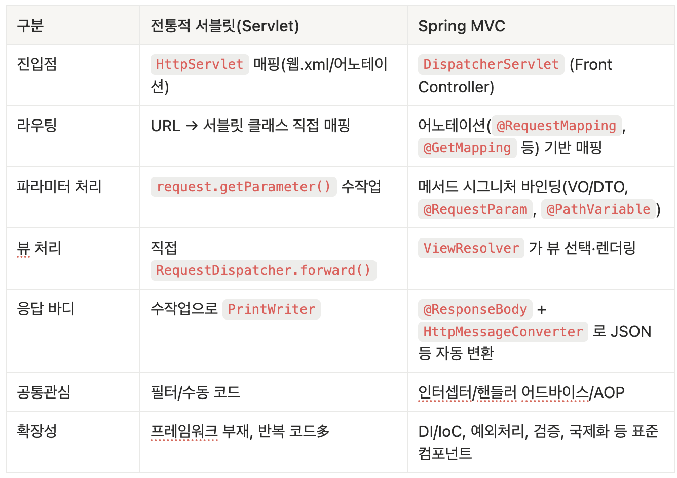 ✏️ 왜 Spring MVC가 더 편리한가?? (프레임워크 역할)